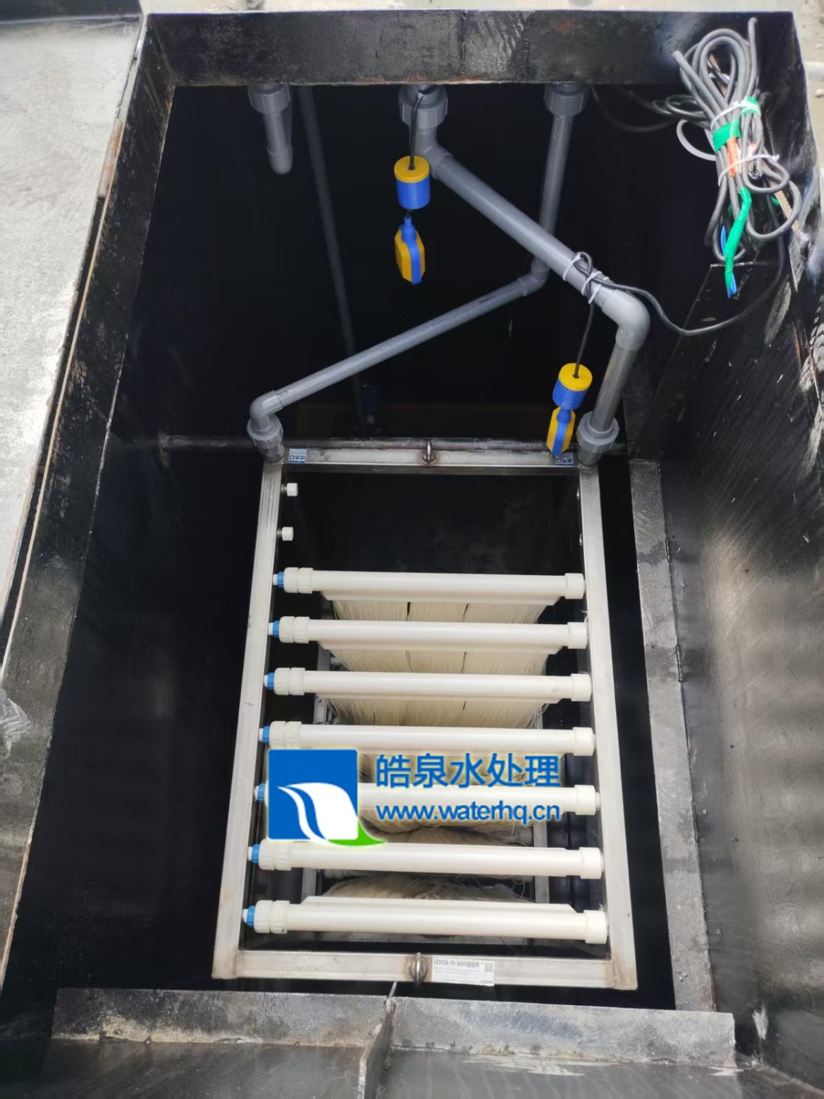 將MBR膜組件直接安置在MBR池中,通過泵的負(fù)壓抽吸作用得到膜過濾出水。由于膜浸沒在反應(yīng)器的混合液中,因此也稱為浸沒式或淹沒式MBR。一體式MBR具有工藝簡(jiǎn)單、運(yùn)行費(fèi)用低和出水水質(zhì)好等優(yōu)點(diǎn)。在生物反應(yīng)器內(nèi)放置0.1微米的微/超濾膜,可過濾截留全部膠體污染物質(zhì)與細(xì)菌、大部分病毒,并通過活性污泥消化分解污染物質(zhì),膜產(chǎn)水優(yōu)質(zhì)穩(wěn)定,只需較少的消毒劑用量就能消滅剩余的病毒。