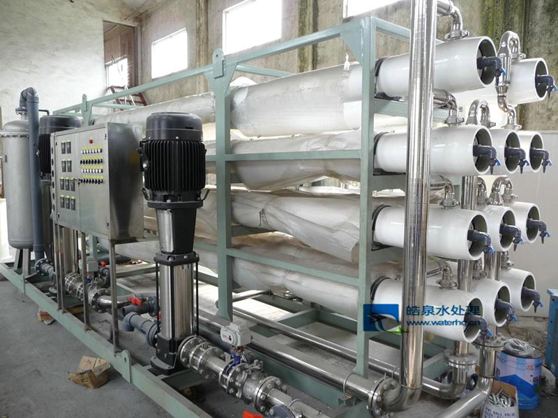 反滲透設(shè)備通過(guò)高壓泵將原水(進(jìn)水)推向反滲透膜,以克服水的自然滲透壓,進(jìn)而使水分子逆滲透通過(guò)反滲透膜。